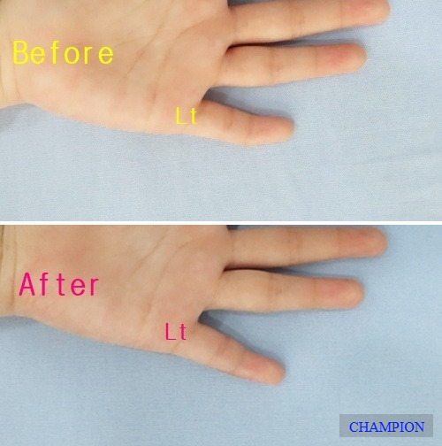 휘어진 손이 곧게 펴지고, 측만지가 바로잡히며, 굴지증으로 짧아 보이던 부위가 보완되면서 전체 손의 균형이 자연스러워집니다.